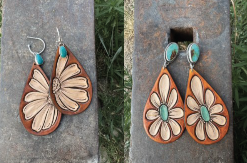 Create Your Own Tooled Leather & Authentic Turquoise Earrings With Magpie West and Hanging Moon Silver
